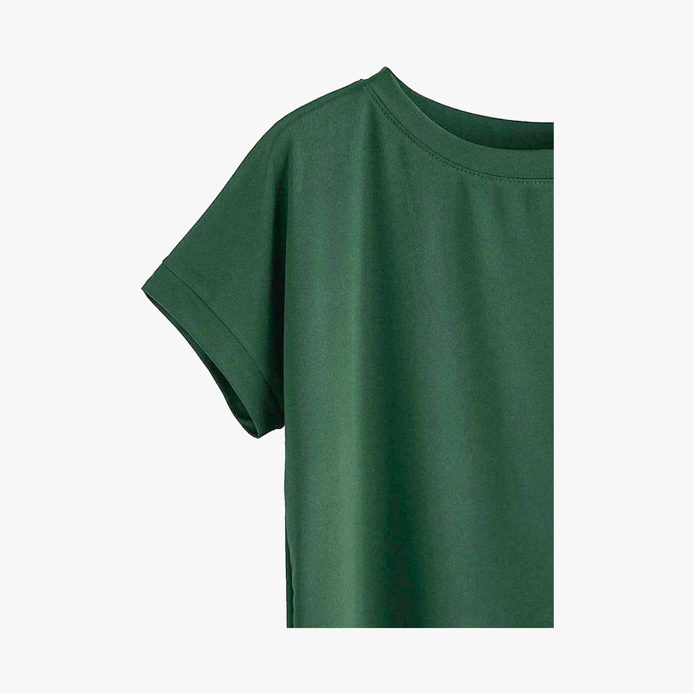 Features: crew neckline, button-back detail, short sleeves with rolled-up cuffs, straight hemline, side slits. Fit: semi-fitted; follows the lines of the body with added wearing ease. Length: missy length 25-1/4″ to 27-5/8″.